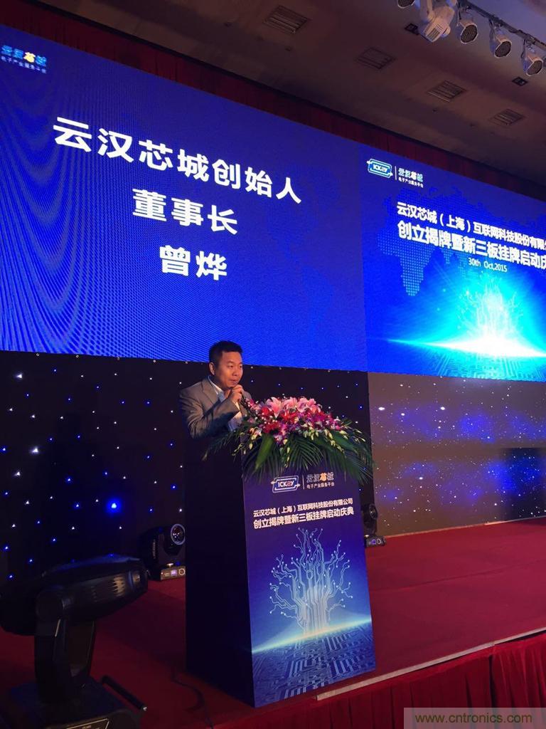 啟動儀式上,云漢芯城創(chuàng)始人、董事長曾燁介紹了公司在傳統(tǒng)電子產(chǎn)業(yè)耕耘多年后毅然轉(zhuǎn)戰(zhàn)互聯(lián)網(wǎng)的蛻變歷程,并宣布云漢芯城已順利完成股改,成功啟動新三板掛牌。上海云漢電子有限公司正式更名為云漢芯城(上海)互聯(lián)網(wǎng)科技股份有限公司(以下簡稱“云漢芯城”)。