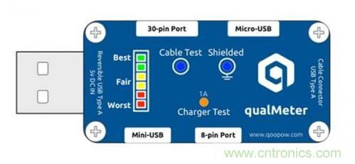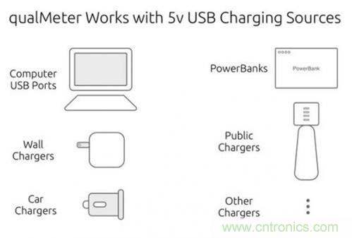 qualMeter能用于各種主流的USB充電線纜的測試,它還可以測試5V充電器的帶負載能力,從而大致確定其質量。