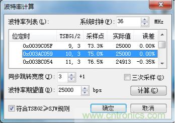了解設置波特率的原則后,我們采用ZLG的波特率計算軟件,對25kbps波特率的設置參數進行計算,計算結果如圖3。