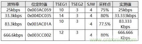 同步跳轉寬度(SJW):SJW的值直接影響到重同步時相位緩沖段的可調節的范圍,SJW的值可以在1~4之間選擇,我們選擇3、4可以使總線獲得更寬的波特率容忍度;