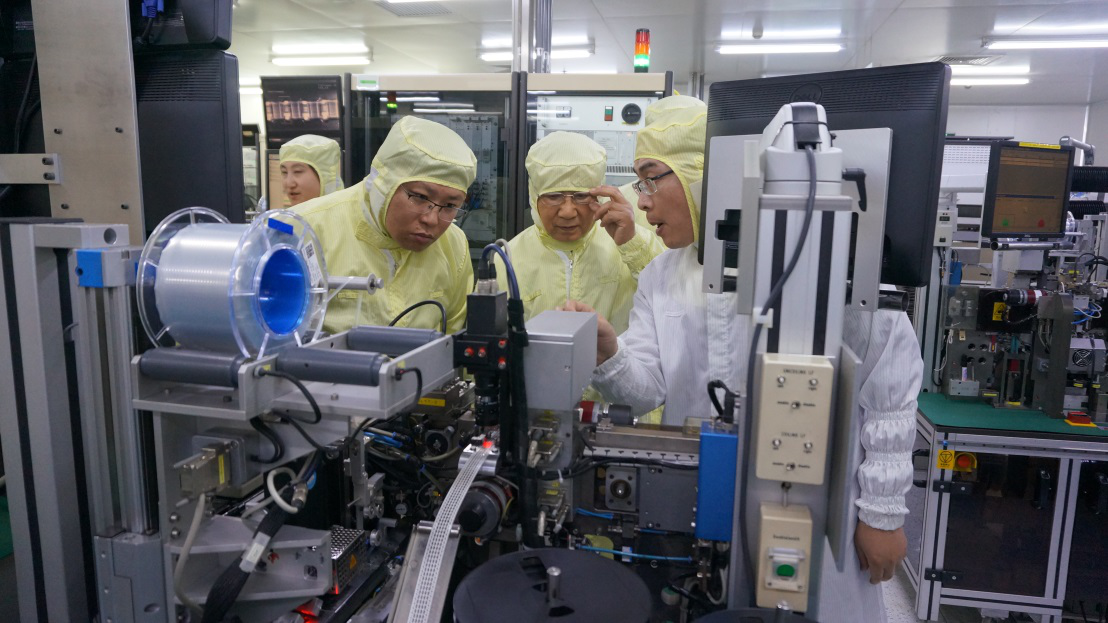 隨后,陳清泰理事長一行還參觀了英飛凌無錫工廠生產現場,向工程師仔細詢問各種器件的用途、制造及測試方法,并重點了解了如何滿足汽車行業的可靠性和追溯性等要求。陳理事長在深入了解了英飛凌針對所有制造數據和測試結果追溯和存儲的流程,且積極使用大數據在生產流程中進行質量管控的做法后,對比表示非常滿意。
