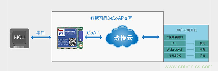 基于云服務的CoAP協(xié)議傳輸?shù)奶卣魇菙?shù)據(jù)可靠,簡單易用。通過連接有人透傳云實現(xiàn)交互,透傳云會提供二次開發(fā)接口,供終端應用開發(fā)。