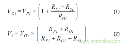 另外,輸入放大器的偏置電流會導致因增益而異的失調。由于輸入放大器和輸出緩沖器采用同一芯片,因此可以利用其偏置電流的相對匹配性來消除上述失調變化。將一個大小等于 RF2與 RF1之差值的電阻與開關 S2A 串聯,可以減少失調-電壓差。下面的推導公式說明,在 V1 采樣可產生所需的信號增益,且無增益誤差。RS表示開關電阻。V2 可以利用同樣的方法導出。