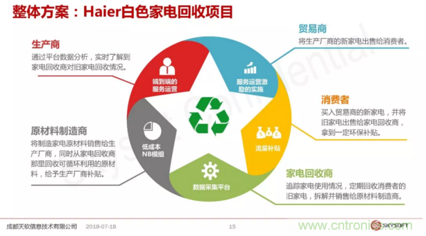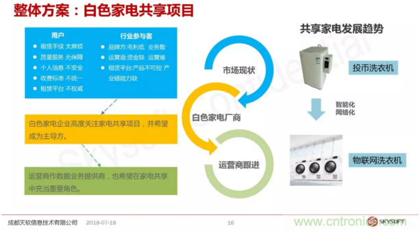 黃總介紹了天軟信息現有模組和設備的應用案例,包括給國外運營商提供的方案,為社區一鍵呼叫方案,還有端到端的應用方案。黃總說,“端到端是什么意思呢,不是說從芯片到設備或者到具體的一個行業應用,而是說基于一個客戶端提出來某種特定的場景應用需求,我們作為一個整體方案商從底層芯片到底端到中間的一些軟件包括策略這些整體推出的一個針對這個具體應用的一個解決方案。”黃總接著分享了兩個端到端的解決方案:白色家電回收和共享家電。精彩的案例受到聽眾的熱烈歡迎。