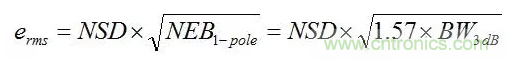 然而,關于應把該乘法因數放在噪聲公式中的何處,似乎一直存在混淆。請記住,NEB調節的是帶寬,而非噪聲,因此應在根號下面,如下式所示: