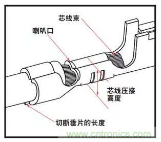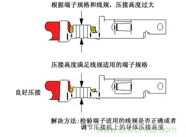 過大的壓接高度也無法有效壓接芯線,會(huì)形成壓接區(qū)過大的無效空隙,使芯線和端子金屬之間沒有足夠的緊接。