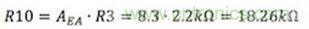 首先,將R3從3.74KΩ改變為2.2KΩ,得到想要的3.37V輸出。然后由R10和R3的比值確定誤差放大器增益。