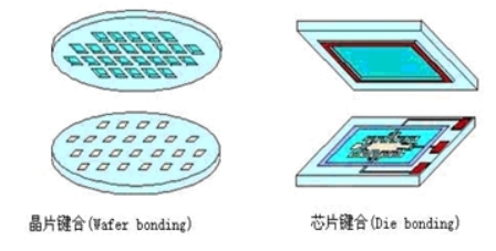晶片鍵合(Wafer bonding)技術是指芯片結構和電路的制作、封裝都在晶片(Wafer)上進行,封裝完成后再進行切割,形成單個的芯片(Chip);與之相對應的芯片鍵合(Die bonding)是指芯片結構和電路在晶片上完成后,即進行切割形成芯片(Die),然后對單個芯片進行封裝(類似現在的LED封裝工藝),如圖6所示。很明顯,晶片鍵合封裝的效率和質量更高。由于封裝費用在LED器件制造成本中占了很大比例,因此,改變現有的LED封裝形式(從芯片鍵合到晶片鍵合),將大大降低封裝制造成本。此外,晶片鍵合封裝還可以提高LED器件生產的潔凈度,防止鍵合前的劃片、分片工藝對器件結構的破壞,提高封裝成品率和可靠性,因而是一種降低封裝成本的有效手段。