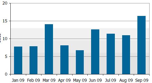 以上主要摘要說明2009年9月份及第3季北美大型商用顯示器市場終端銷售成果,資料主要摘錄自Monthly Large Format Commercial Displays Sell Through Report。
