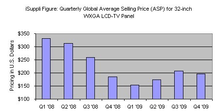 - 預計32英寸WXGA LCD電視面板第四季度的平均價格是196美元,比第三季度下降5.8%