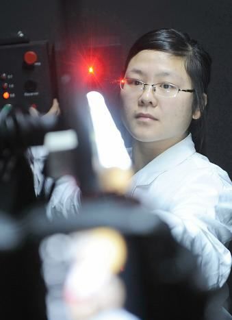 圖:天津工業(yè)大學(xué)半導(dǎo)體照明工程研發(fā)中心的科技人員在測(cè)試LED燈光通量大小