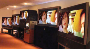 對(duì)任何顯示技術(shù)的圖像和畫質(zhì)進(jìn)行評(píng)估的最好方法是把多部電視放在一起,仔細(xì)控制各種條件,一個(gè)挨一個(gè)地同時(shí)進(jìn)行測(cè)試,讓所有電視都顯示完全一樣的高品質(zhì)畫面。你需要一個(gè)理想的觀看環(huán)境、D6500背光、出眾的視頻信號(hào)源,以及一流的視頻信號(hào)分配系統(tǒng)。然后,讓各制造商派出最好的工程師,仔細(xì)設(shè)置調(diào)節(jié)他們的電視直到達(dá)到最佳圖像和畫質(zhì)效果。2005年7月我們一整個(gè)月都在做這樣的事情,這是一件花時(shí)間的工作,但結(jié)果非常有意思,絕對(duì)值得花費(fèi)所需的資源。