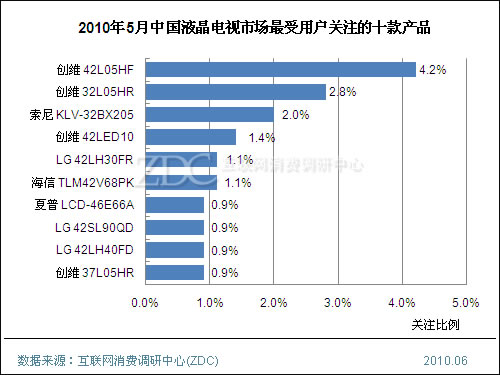 (圖)2010年5月中國液晶電視市場最受用戶關注的十大品牌