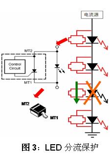 3)利用LED電流旁路保護(hù)器來增強LED串可靠性