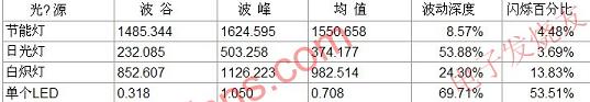 表1各種光源閃爍參數
