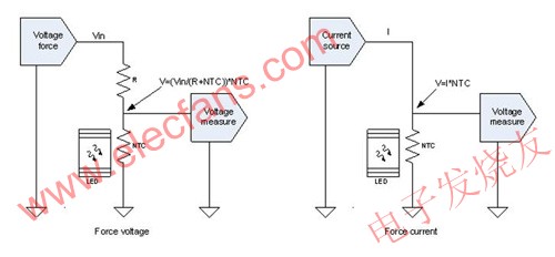 就改進操作、提高安全性而言,這兩種監(jiān)控LED燈溫度的方法實施起來都很簡單直接。圖1是使用LED作為升溫源頭的這兩種方法的原理圖。