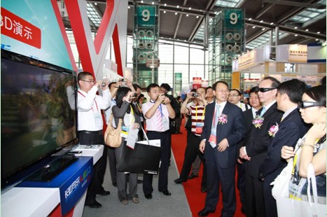 部省領(lǐng)導(dǎo)在去年的彩電節(jié)上參觀并體驗(yàn)長虹集團(tuán)的3D技術(shù)