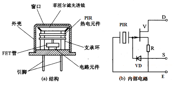 圖6:紅外傳感器內部結構與內部電路圖
