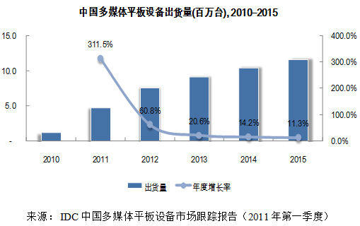 - 預(yù)計(jì)2015年多媒體平板設(shè)備市場(chǎng)出貨量達(dá)到1154萬臺(tái)
