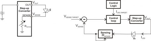 圖2使用外部電流檢測(cè)電阻的簡(jiǎn)單LED 驅(qū)動(dòng)方法