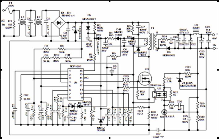 圖1 基于NCP1652A的單段轉換器的完整原理圖[page]