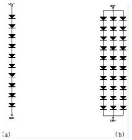 多個LED也可以采用串并聯(lián)的結(jié)構(gòu),通常我們稱之為幾串幾并。例如10串3并就是如圖9b的結(jié)構(gòu)。