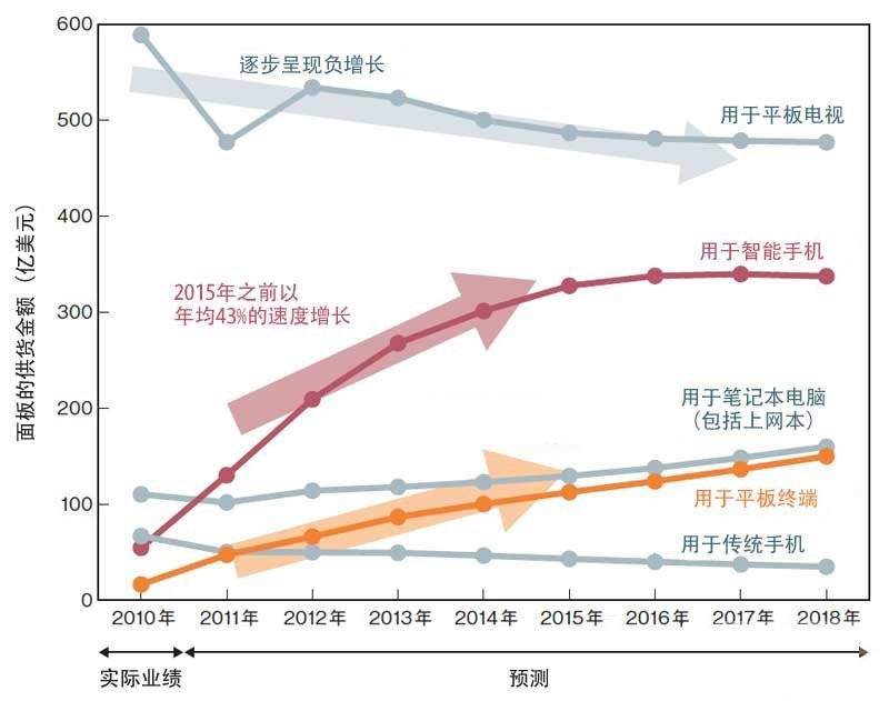 - 2015年之前智能手機面板將實現年均40%以上的增長率