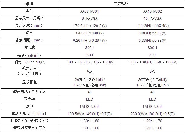 本公司為滿足上述需求,本次特發(fā)售帶有LVDS接口,具有高亮度、高對比度、寬視角等特點的8.4型、10.4型VGA液晶模塊。