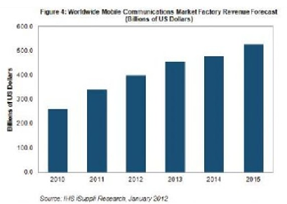 - 2012年移動通信市場的工廠營業收入預計達到3980億美元