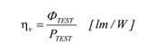 發光效率ηv的計算如下列公式(6)所述,為待測固態照明產品的總光通量ΦTEST除以總消耗功率PTEST,此指標是用以評估固態照明電光效能轉換的重要指標。