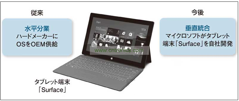 一直很重視與硬件廠商水平分工以建立“生態(tài)系統(tǒng)”的微軟,轉(zhuǎn)換成了連硬件也一同開(kāi)發(fā)的垂直整合戰(zhàn)略