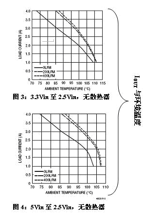 DC/DC 穩(wěn)壓器具有高效率并不意味著它能夠散出浪費(fèi)的功率,尤其是在其尺寸縮小后,更是這樣。為了讓一個(gè)更緊湊的 DC/DC 設(shè)計(jì)提供同樣的功率,POL 系統(tǒng)必須具有較低的熱阻。否則,POL 解決方案的額定輸出功率甚至在相對(duì)正常的環(huán)境溫度和電壓轉(zhuǎn)換條件下也必須降低。例如,如果 LTM4604 的封裝有熱阻不良問(wèn)題,那么它在 70oC 至 90oC 的環(huán)境溫度范圍時(shí),必須降級(jí)為 1.5A 器件,甚至有空氣流動(dòng)時(shí)也一樣。為了保證甚至在極端的環(huán)境溫度和 DC/DC 轉(zhuǎn)換條件下,都能以最少的功率降額提供最高的輸出,LTM4604 的封裝設(shè)計(jì)允許從頂部和底部散熱。參見(jiàn)圖 3、圖 4 和表 2,其中列舉了就 2.5V 輸出電壓設(shè)計(jì)所測(cè)得的熱阻。