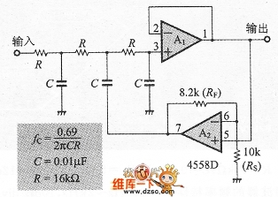 另外,由于輸人段采用無源RC電路,所以除去高頻波的能力也很強。