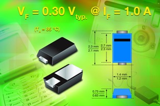 日前,Vishay Intertechnology宣布,推出兩款新型肖特基整流器 --- MSS1P2U和MSS1P3U,在+85℃和+25℃時的前向壓降分別只有0.35V和0.4V。器件采用小型MicroSMP功率封裝,額定電壓分別為20V(MSS1P2U)和30V(MSS1P3U),輸出電流為1A,Vishay此次推出的新型器件的高電流功率密度和低熱阻有助于實現節省空間的設計。