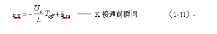 當(dāng)控制開(kāi)關(guān)K由接通期間Ton突然轉(zhuǎn)換到關(guān)斷期間Toff的瞬間,流過(guò)電感L的電流iL達(dá)到最大值: