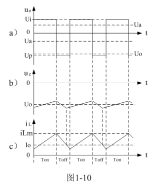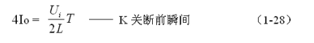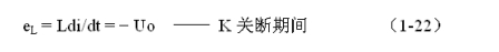 式中–Uo前的負號,表示K關斷期間電感產生電動勢的方向與K接通期間電感產生電動勢的方向正好相反。對(1-22)式進行積分得: