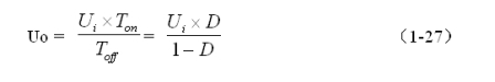 由(1-27)式可以看出,反轉式串聯開關電源輸出電壓與輸入電壓與開關接通的時間成正比,與開關關斷的時間成反比。
