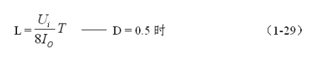 (1-29)和(1-30)式,就是計算反轉式串聯開關電源中儲能電感的公式。同理,(1-29)和(1-30)式的計算結果,只給出了計算反轉式串聯開關電源儲能濾波電感L的中間值,或平均值,對于極端情況可以在平均值的計算結果上再乘以一個大于1的系數。