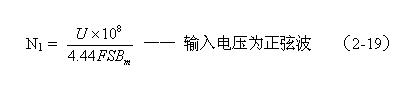 (2-18)式雖然是用于計算雙激式開關電源變壓器初級線圈N1繞組匝數的公式,但只需把式中的某個別參數稍微進行變換或修改,同樣可以用于計算其它波形電源變壓器初級線圈匝數的公式。