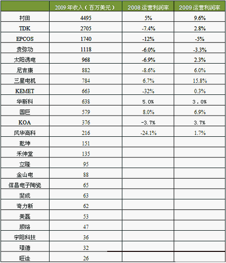 - 水清木華公布了09年全球被動(dòng)元件供應(yīng)商營(yíng)業(yè)額排名