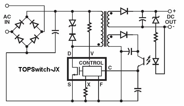 圖:TOPSwitch-JX用于反激式電源設計