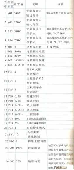 表1示出變頻器參數(shù)設(shè)置及其說明