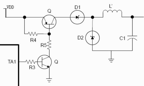 充電控制電路設計的核心是利用PWM控制MOSFET管的導通,MSP430F20X3系列時鐘頻率最高為16MHz。如果取PWM分辨率為9位,MOSFET管工作頻率為16000000/512=32768 (Hz),在音頻范圍外,不會產生噪聲。考慮到脈沖寬度與電源的輸出并非線性關系,電源輸出最多能控制到1/256,完全滿足設計精度的需要。原理圖如圖2。