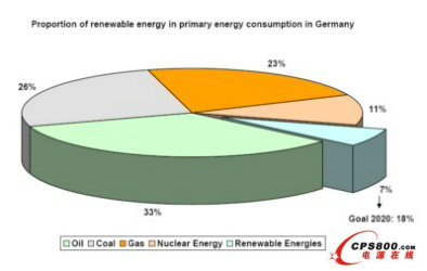 歐洲是現代能源和氣候政策的先驅,德國是利用新能源技術方面一個最好的例證。鑒于到2020年,要實現減少14%的二氧化碳排放量(與2005年的排放量相比)的目標,到2020年可再生能源在初級能源消耗中的比例要增加到18%(2005年為6%)。對于德國總電力消費來說,這意味著到2020年可再生能源的份額將增加一倍,如圖2所示。展望未來,到2050年計劃可再生能源的份額達到70%。
