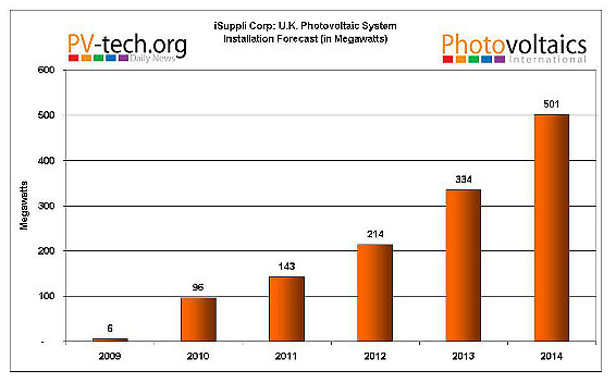 盡管英國(guó)太陽能市場(chǎng)出現(xiàn)了組件和逆變器短缺、安裝商普遍未受培訓(xùn),以及產(chǎn)品價(jià)格遠(yuǎn)高于德國(guó)等現(xiàn)象,其仍被稱為全球增長(zhǎng)最快市場(chǎng)。據(jù)市場(chǎng)調(diào)研公司iSuppli表示,2010年的太陽能系統(tǒng)安裝量將達(dá)96MW,同比上一年度上漲了1500%,而上網(wǎng)電價(jià)補(bǔ)貼政策在今年四月份才剛剛實(shí)施。2009年的新增安裝額僅為6MW。