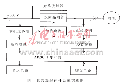本文設(shè)計(jì)以AT89C51單片機(jī)為核心的異步電動(dòng)機(jī)智能軟起動(dòng)器,該裝置可根據(jù)電動(dòng)機(jī)負(fù)載的特性來調(diào)整起動(dòng)過程中的各種參數(shù),是集電動(dòng)機(jī)軟起動(dòng)、軟停車、輕載節(jié)能和多種保護(hù)功能于一體的電機(jī)控制裝置。