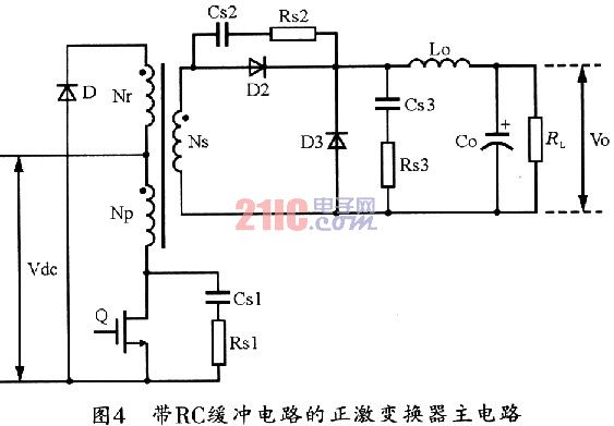 2帶RC緩沖的正激變換器主電路設(shè)計