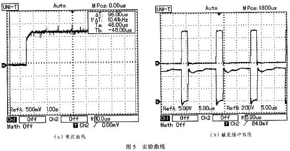 由電流紋波公式可知,增大電感、減小ton都可以減小紋波。為了不提高電感容量,實驗中采用200kHz的工作頻率,其中電感選用4.8-μH,根據公式可得激光管壓降2V時紋波電流約為1000mA。