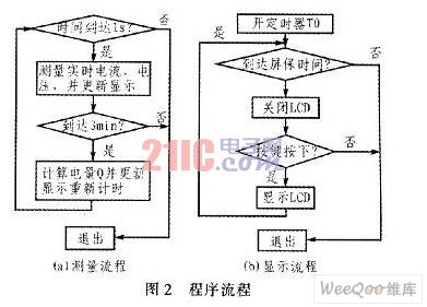 系統軟件設計主要由單片機完成,主要實現數據采集和控制顯示,整個軟件系統設計采用模塊化思想,其測量和顯示程序流程如圖2所示。