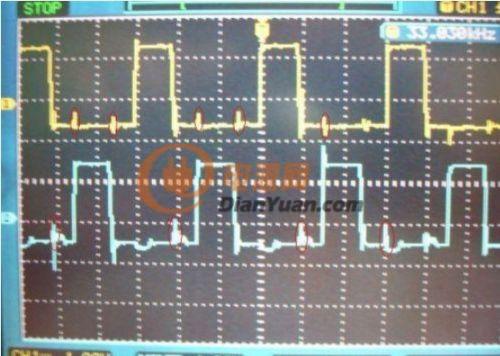 由于大部分逆變器的MOS管驅(qū)動部分的供電與主振蕩IC一樣,都為單電源供電(用SG3525輸出直驅(qū)管MOS的也不少見),因此驅(qū)動波形以0V~+15V方波為多見,此時(shí)驅(qū)動波形如受到干擾(見上圖尖刺部分),如接近達(dá)到MOS管的Vth值,則對系統(tǒng)的不良影響自不用多說,起碼也會影響效率與溫升。如采取一般的手段無法有效減低或避免這種干擾時(shí),采用負(fù)壓關(guān)斷也就很有必要了。這個(gè)問題在專業(yè)的量產(chǎn)方案中,應(yīng)引起足夠的重視。